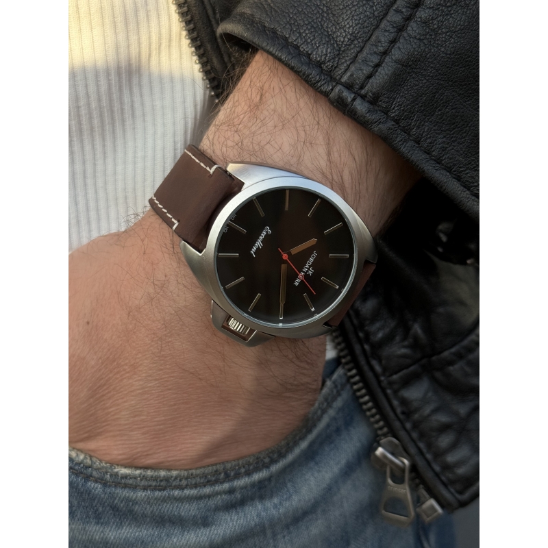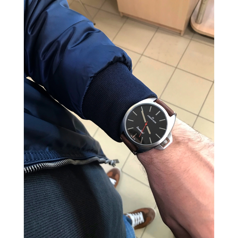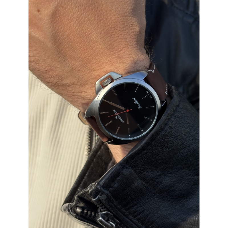 Металлический корпус и застёжка покрыты специальным отверждаемым ионным покрытием IPS. Ионный метод распыления обеспечивает равномерную, гладкую поверхность и повышенную износоустойчивость к стиранию. Модель представлена на ремне из толстой натуральной кожи. Застежка классическая и самая распространенная – на зажим - это простая и надежная конструкция.