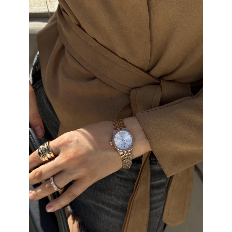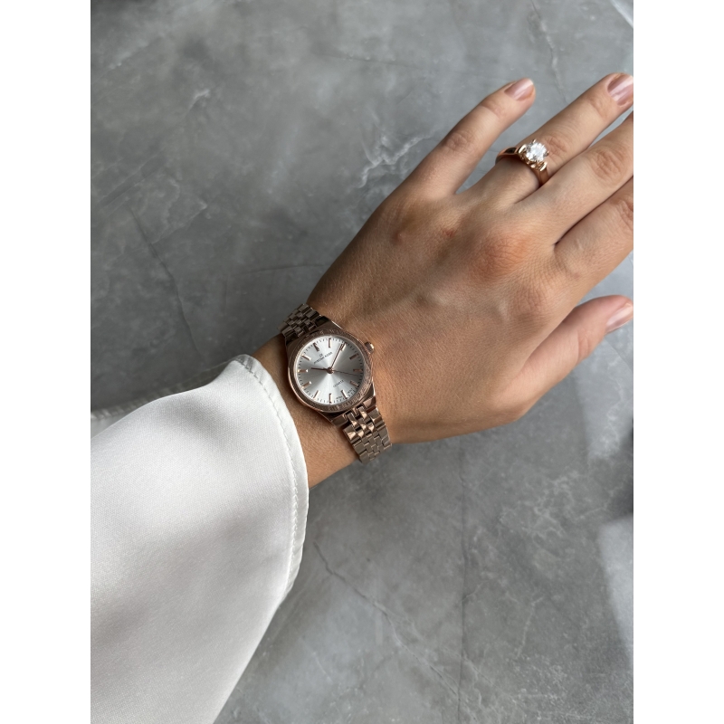 Уменьшение длины браслета возможно путем удаления звеньев браслета. Часы упакованы в брендовую коробочку и пакет. Гарантия – 1 год.