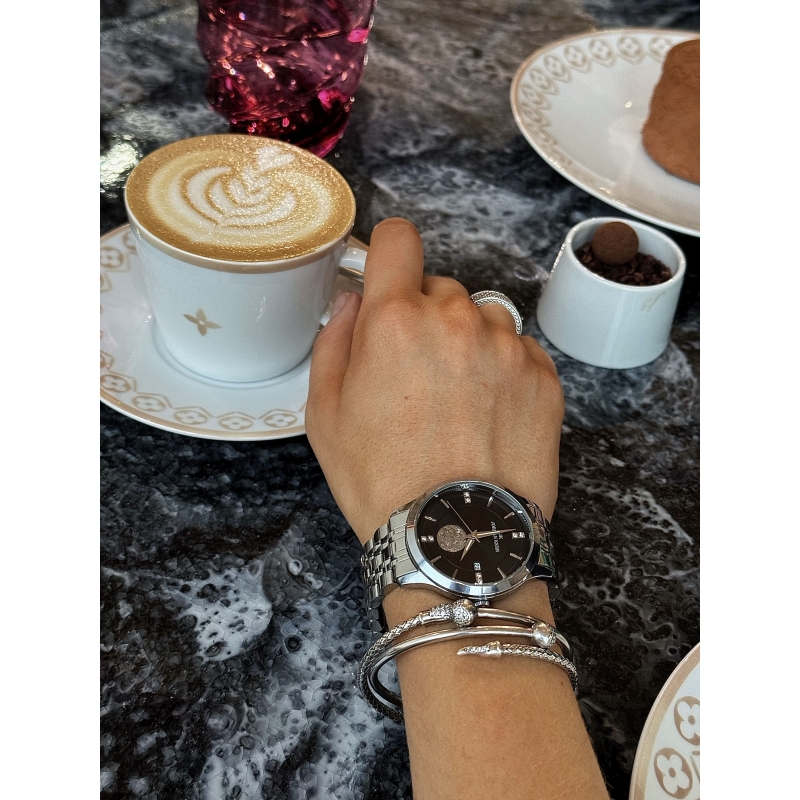 Уменьшение длины браслета возможно путем удаления звеньев браслета. Часы упакованы в брендовую коробочку и пакет. Гарантия – 1 год.