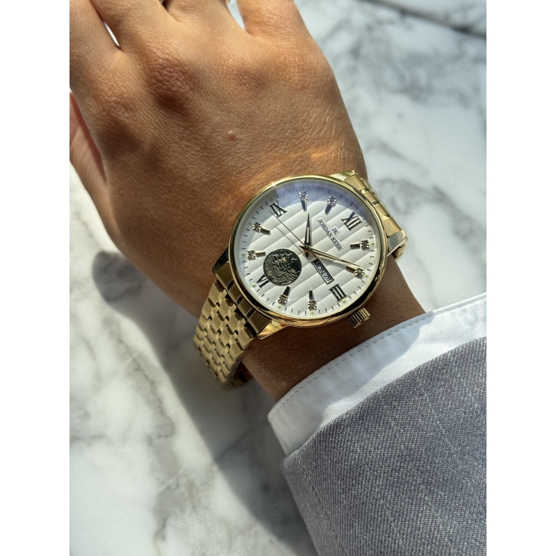 Уменьшение длины браслета возможно путем удаления звеньев браслета. Часы упакованы в брендовую коробочку и пакет. Гарантия – 1 год.